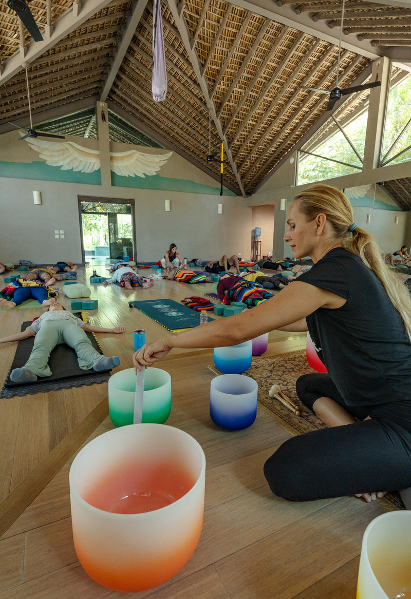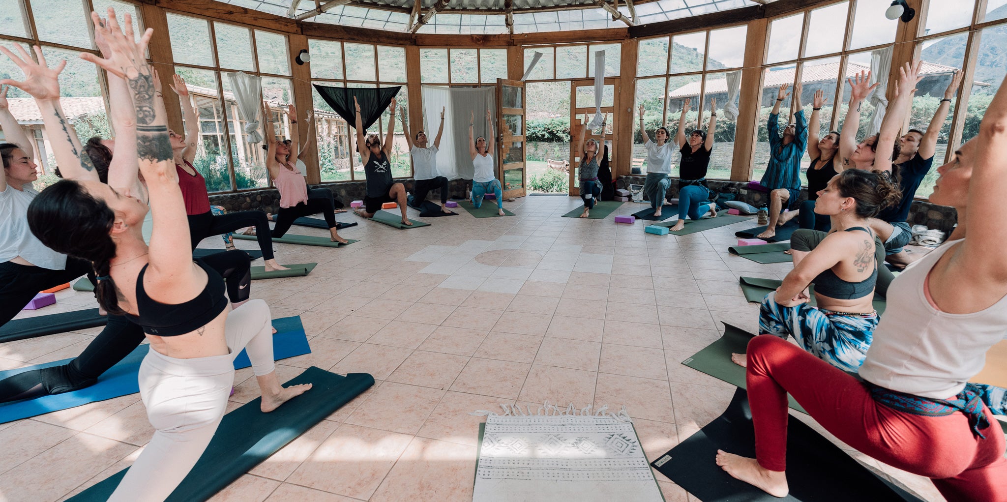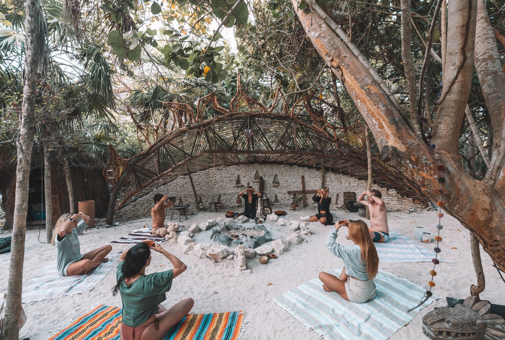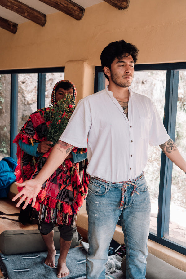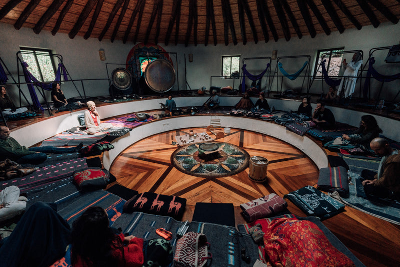 Despacho ceremonies, water blessings, song, silence, integration circles.